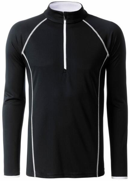Férfi funkcionális hosszú ujjú felső sporthoz és fitneszhez lélegző, gyorsan száradó anyagból. Cipzáros állvédelemmel ellátott.