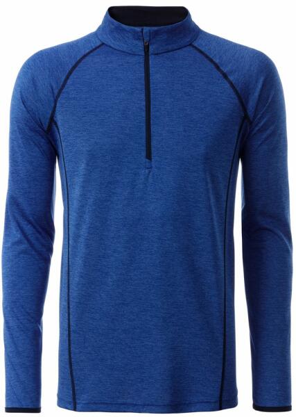 Férfi funkcionális hosszú ujjú felső sporthoz és fitneszhez lélegző, gyorsan száradó anyagból. Cipzáros állvédelemmel ellátott.
