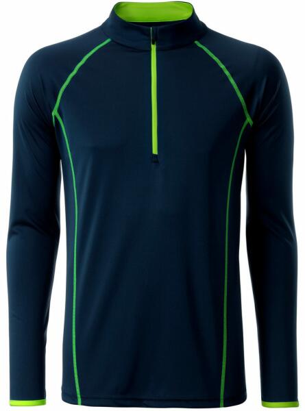 Férfi funkcionális hosszú ujjú felső sporthoz és fitneszhez lélegző, gyorsan száradó anyagból. Cipzáros állvédelemmel ellátott.
